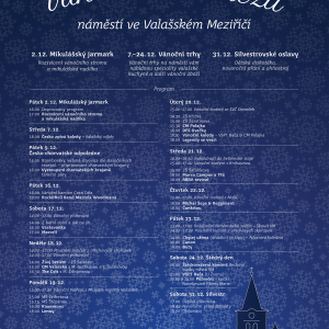Město Valašské Meziříčí vás srdečně zve na Vánoce ve Valmezu, nejkouzelnější období roku. Město se oblékne do adventního a vánoční atmosféra na náměstí potěší každého návštěvníka. Přijďte se podívat a nadechnout se příjemné sváteční atmosféry s bohatým doprovodným programem.